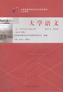 由全国考委组织修订的全国高等教育自学考试除中文专业以外其它专业的公共课新版指定教材《大学语文》(课程代码:04729)由北京大学出版社出版,北京梅迪亚图书发行有限公司发行。封面见下图: